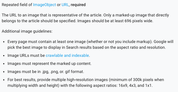 Напомним, тип разметки, о которой говорится выше, востребован веб-мастерами, которые стремятся отображать свои информационные материалы в блоке Google «Главные новости». Отныне, чтобы статье попасть в этот блок, нужно (среди прочего) оптимизировать картинки в соответствии с новыми требованиями.