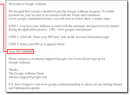 Клик на это сообщение открывает окно, в котором владельцу сайта предлагается ввести уникальный PIN-код, отправленный Google в обычном конверте на его почту. В самом теле письма PIN находится в указанном ниже месте: