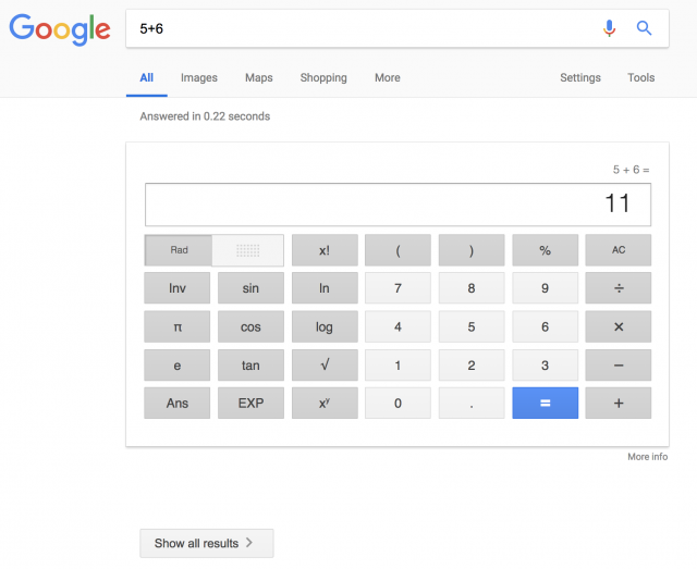 Есть только один готовый ответ на поисковый запрос пользователя. Если хотите получить больше органических ссылок, то нужно дополнительно нажать на кнопку «Show all results» (рус. – показать все результаты). Выглядеть это может так: