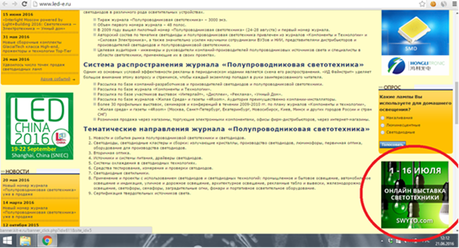 - Статья в разделе «Мероприятия»:http://www.elec.ru/events/2016/svetotehnika-i-svetovye-tehnologii-2016.html
