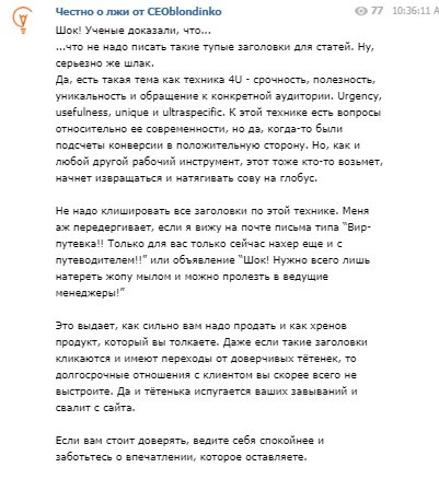 Формат каналов в Телеграме похож на переписку с живым человеком, поэтому рекомендуем обращаться к подписчикам более адресно, как в настоящей переписке.