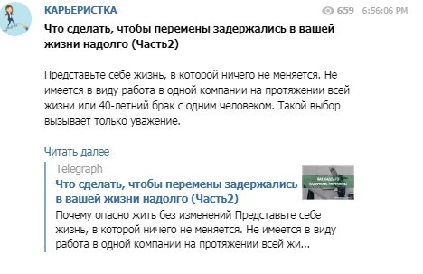 Для Телеграма подойдут небольшие тексты или анонсы длинных материалов, опубликованных в редакторе Телеграф, ссылки на видео и фотографии. Обратную связь можно снимать с помощью опросов и оценок поста, используя ботов. Ленты нет, но нужно поддерживать регулярный постинг, чтобы быть в списке аккаунтов.