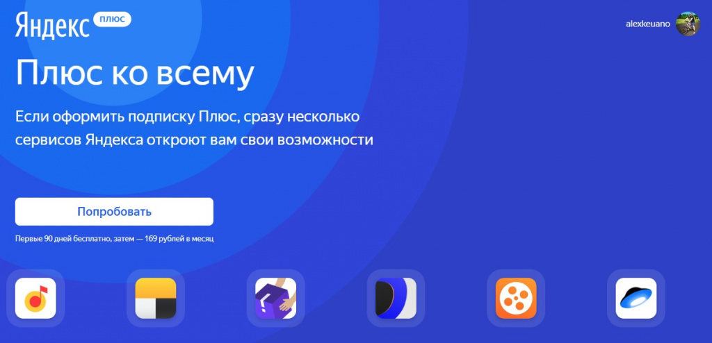 Охват подписки Яндекс.Плюс – территория всей России. В течение первых трех месяцев после ее оформления подписка предоставляется Яндексом совершенно бесплатно. Затем ее стоимость составит 169 рублей в месяц.