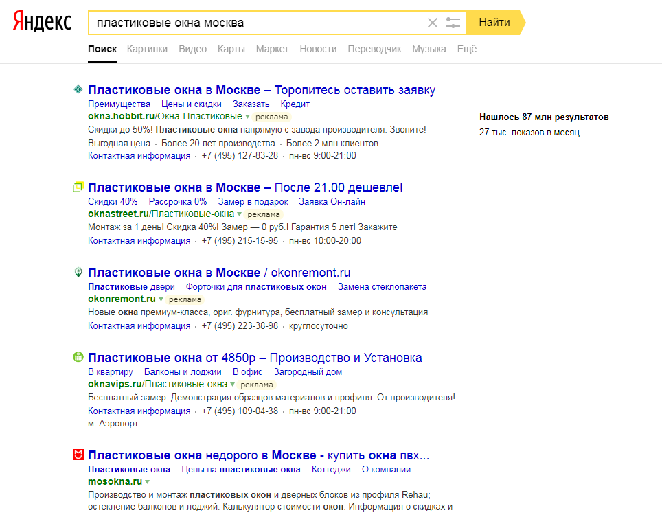 Однако недолго музыка играла! Исчезновение контекстной рекламы Яндекса произошло примерно в 17:30, а уже 21:30 она снова заполонила собой выдачу поисковой системы. Имел место технический сбой в работе поисковика, в пресс-службе которого заявили: