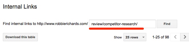 Консоль поиска> Поиск трафика> Внутренние ссылки> введите URL своей страницы:
