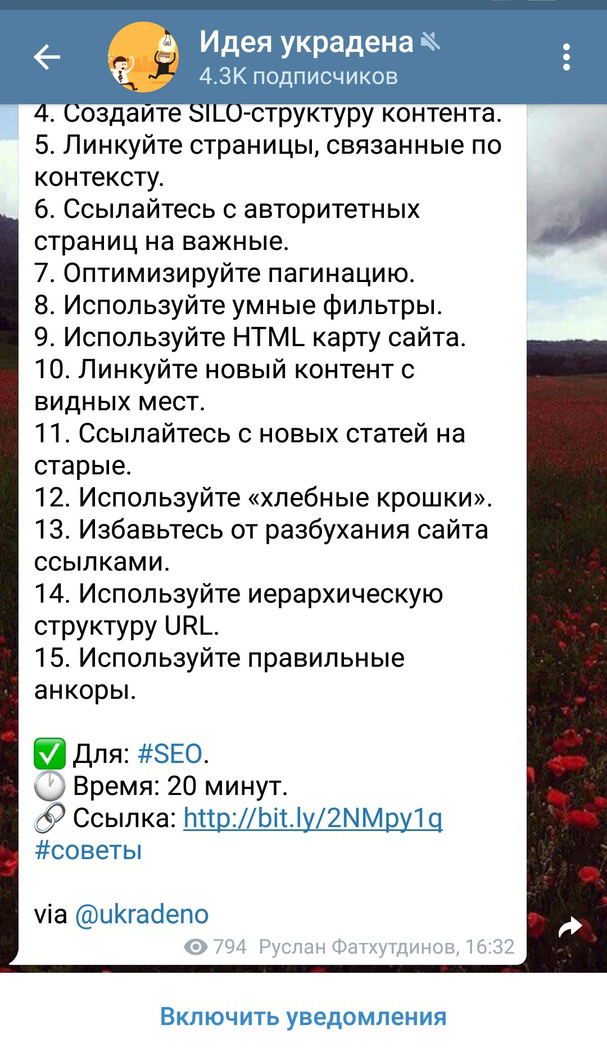Эти каналы интересны как агрегаторы контента по теме — чтобы не подписываться на пять каналов по SEO, можно подписаться на один агрегатор, который будет собрать самое интересное в подборки.