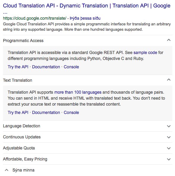 Клик по новым ссылкам в поиске не перенаправляет на конкретную страницу сайта, а раскрывает скрытый сниппет, дополнительно описывающий контент страницы: