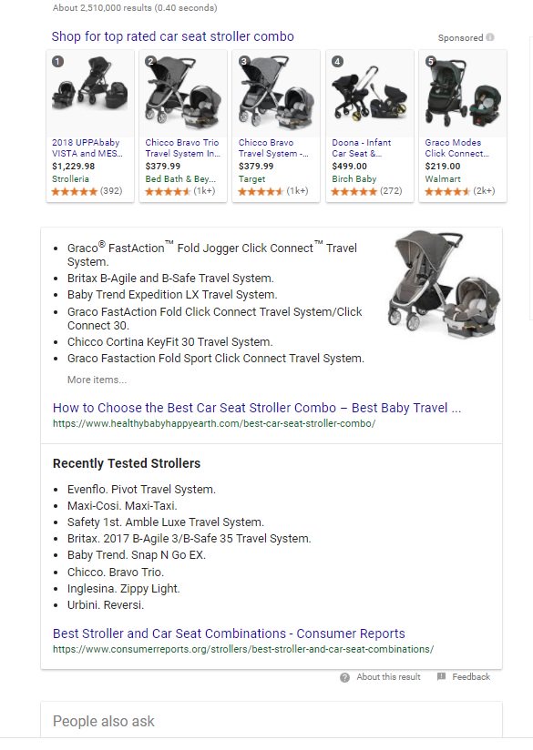 В ответ на поисковый запрос Google выводит два совмещенных расширенных сниппета двух разных сайтов.