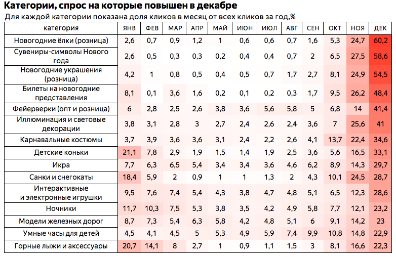 Не отстает и категория детских товаров. Пользователи Яндекса проявляют повышенный интерес к санкам, конькам, снегокатам, конструкторам и умным часам.