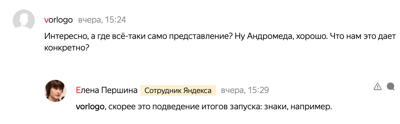 По словам сотрудника Яндекса «Андромеду» стоит считать подведением итогов последних крупных обновлений.