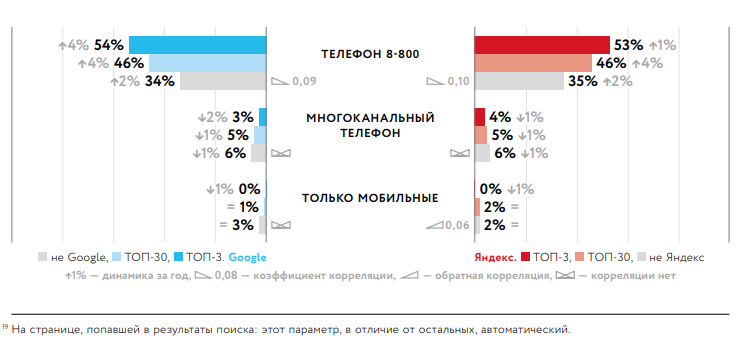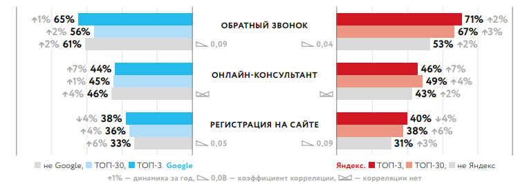 В топ-30 Яндекса две трети сайтов имеют функцию обратного звонка, в Google корреляция еще сильнее.