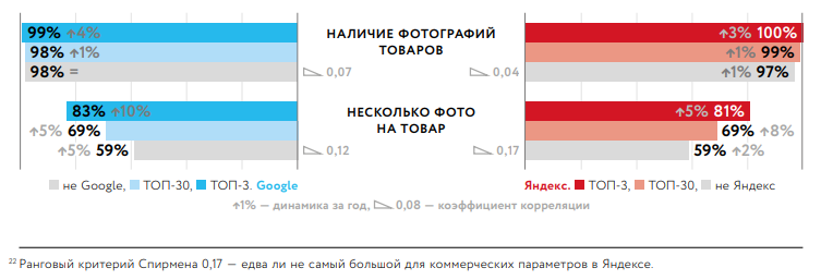 Фото товаров нужно обязательно: 99% сайтов в топ-30 Яндекса и 98% в Google публикуют фото.