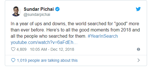 Ролик создан с учетом самых популярных поисковых запросов в Google в текущем году. Вот как прокомментировал видео генеральный директор компании Сандар Пичай: