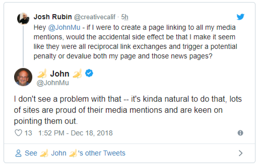 «Я не вижу здесь никакой проблемы, поскольку это обычная практика. Многие сайты гордятся своими упоминаниями в медиа и всячески их подчеркивают».