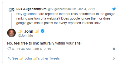 К дискуссии подключился Барри Шварц, который подтвердил слова Мюллера – количество внутренних ссылок на одну и ту же страницу сайта для Google роли не играет. Главное, чтобы такие линки использовались к месту.