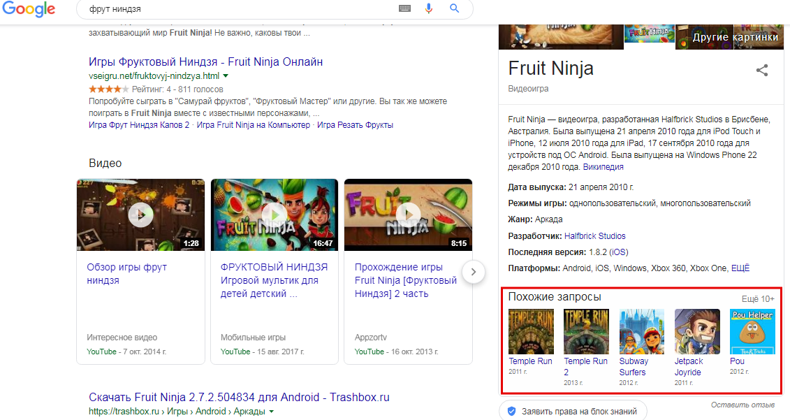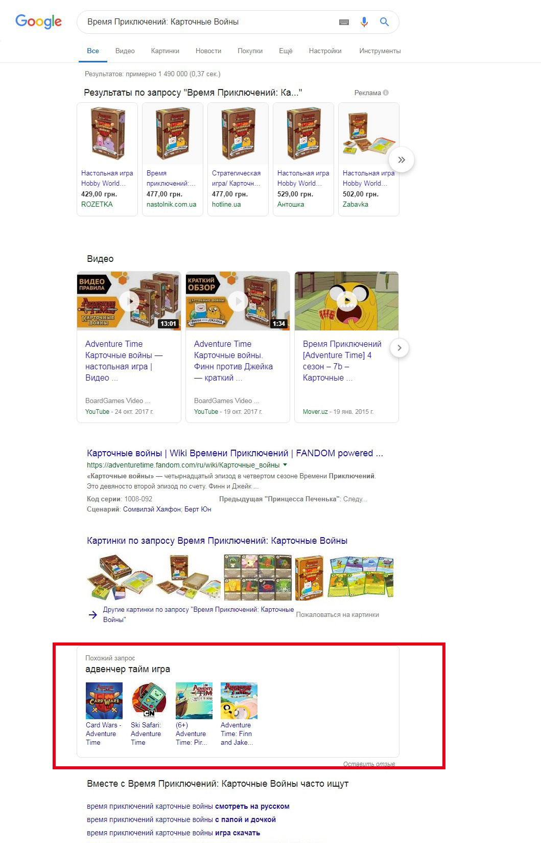 Для запроса «настольные ролевые игры» блок «Похожий запрос» предлагает связанный жанр рпг: