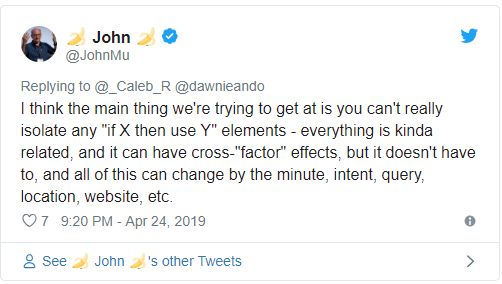 К такому выводу можно прийти, читая между строк твиты сотрудников поисковой системы. Далее – Джон Мюллер: