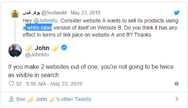 «Если вы создадите два сайта из одного, то это не значит, что вы станете в два раза заметнее в Google SERP».