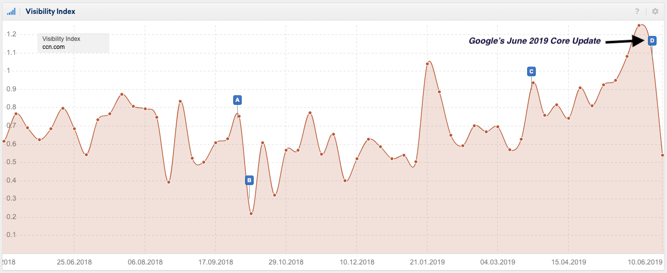 Причина – катастрофическое падение трафика. Июньский апдейт основного поискового алгоритма Google лишил сайт 71% пользователей с мобильных устройств. По оценкам отдельных экспертов, видимость CCN.com в Google ухудшилась вдвое. Как следствие, доход новостного портала рухнул на 90%.