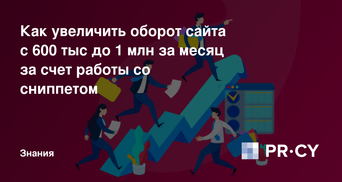Если при кликабельности сниппета 2% вы получали 3000 трафика и оборот в 600 000 рублей, то после этого внедрения вы получаете 5000 трафика и оборот миллион рублей! Звучит круто, правда? За месяц на порядок увеличить свой оборот.