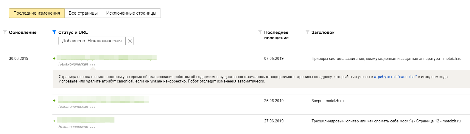 Поисковая система также напоминает, что статус второстепенной страницы можно отследить в Яндекс.Вебмастере (раздел «Страницы в поиске», пометка «Неканоническая»).