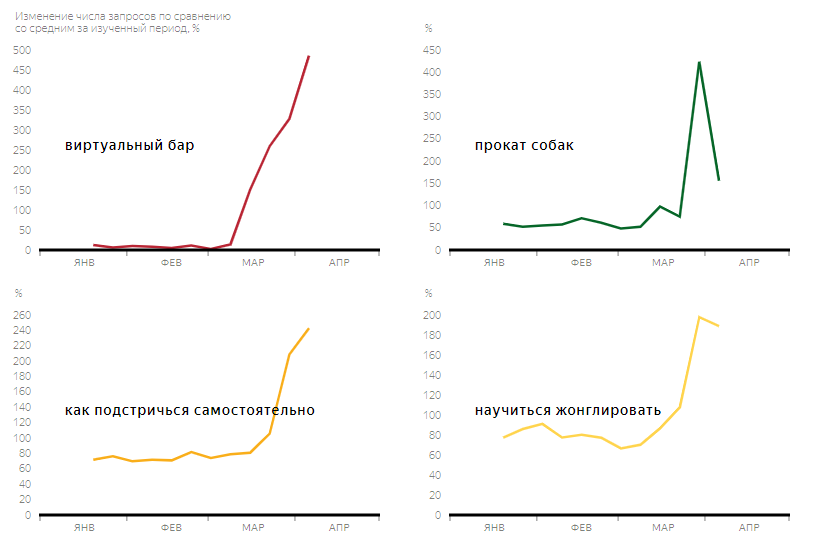Длительная самоизоляция заставила людей интересоваться вещами, которые в нормальных условиях их вряд ли бы заинтересовали. Отсюда все эти странные поисковые запросы, которые ежедневно обрабатывает Яндекс.