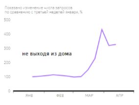 Поиск информации в интернете во время пандемии COVID-19 имеет свои особенности. Начиная со второй половины марта, констатирует Яндекс, начался стремительный рост поисковых запросов с уточнением «не выходя из дома».
