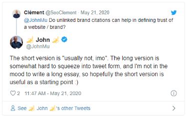 «Правда ли, что цитирование бренда без подвязки ссылки способно улучшить траст сайта/бренда в глазах поисковика?»