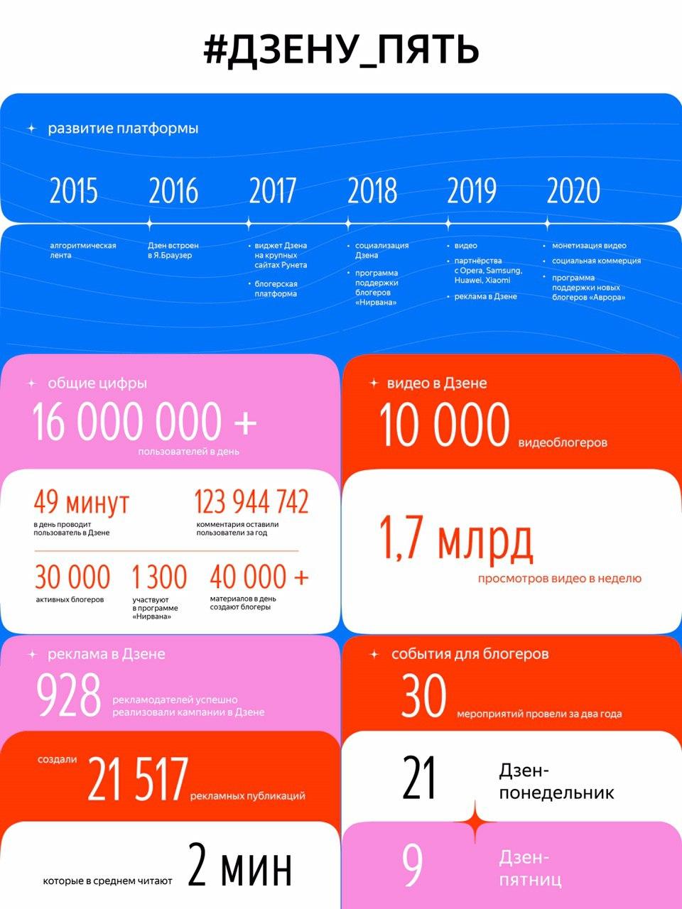 За последние пять лет Я.Дзен прошел путь от ленты новостей в Яндекс.Браузере до популярной блогосферы с тысячами активных издателей и миллионами читателей. По случаю своего рождения Яндекс.Дзен выложил в Telegram-канале любопытную статистику. Главные достижения сервиса за последние годы выглядят так: