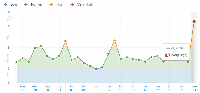На этот раз большинство сервисов мониторинга позиций в Google SERP в общем порыве подтверждают масштабное обновление.