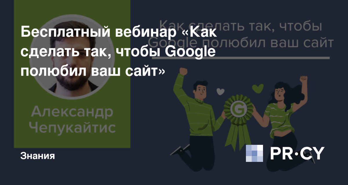 2 июля Александр Чепукайтис, руководитель агентства Ant-Team.ru, на ютуб-канале PR-CY проведет бесплатный вебинар «Как сделать так, чтобы Google полюбил ваш сайт».