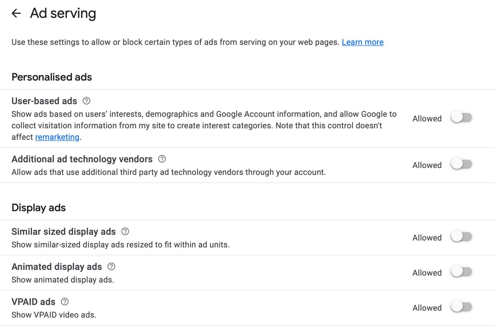 За издателем AdSense останется право контролировать показ такой рекламы на своем сайте. Во вкладке «Показ объявлений» при необходимости можно будет заблокировать демонстрацию рекламного контента от таких внешних поставщиков.