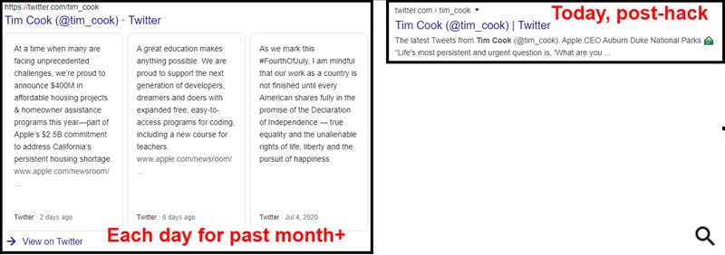 Похоже, что Google принял меры и удалил данные с твитами из результатов поиска. Как сообщает FiveBlock, 16 июля все блоки с результатами из Твитера пропали из поисковой выдачи.