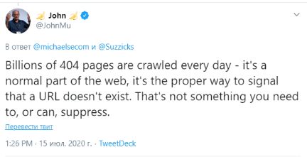 «Миллиарды страниц с кодом ответа 404 сканируются нами ежедневно. Это обычная практика для сети. Только так наши боты способны определить, что конкретный URL больше не существует. Вы не должны намеренно препятствовать этому процессу».