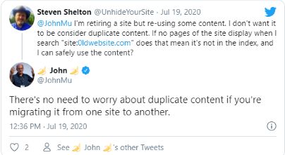 «Волноваться о дублированном контенте не нужно, если вы просто переносите его с одного сайта на другой».