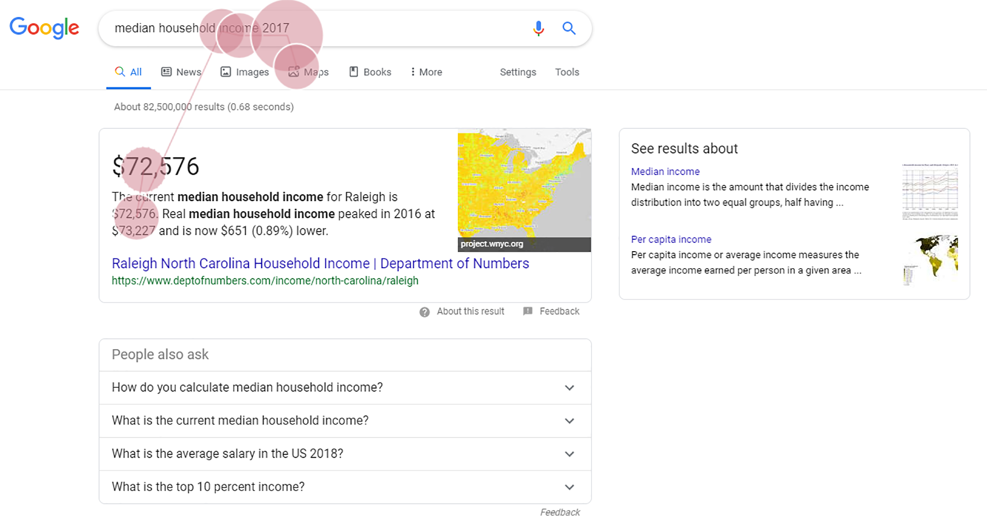 В городе Роли в Северной Каролине, США, исследователи попросили участников прочитать очень длинную статью на census.gov и выяснить, каким был средний доход семьи в Америке в 2017 году. Большинство из участников прочли статью от корки до корки, но ответ найти не смогли. Некоторые решили проверить результат где-то еще. Устав от всего прочитанного, они просто посмотрели самый популярный фрагмент, предложенный Google, даже не ознакомившись с текстом полностью.