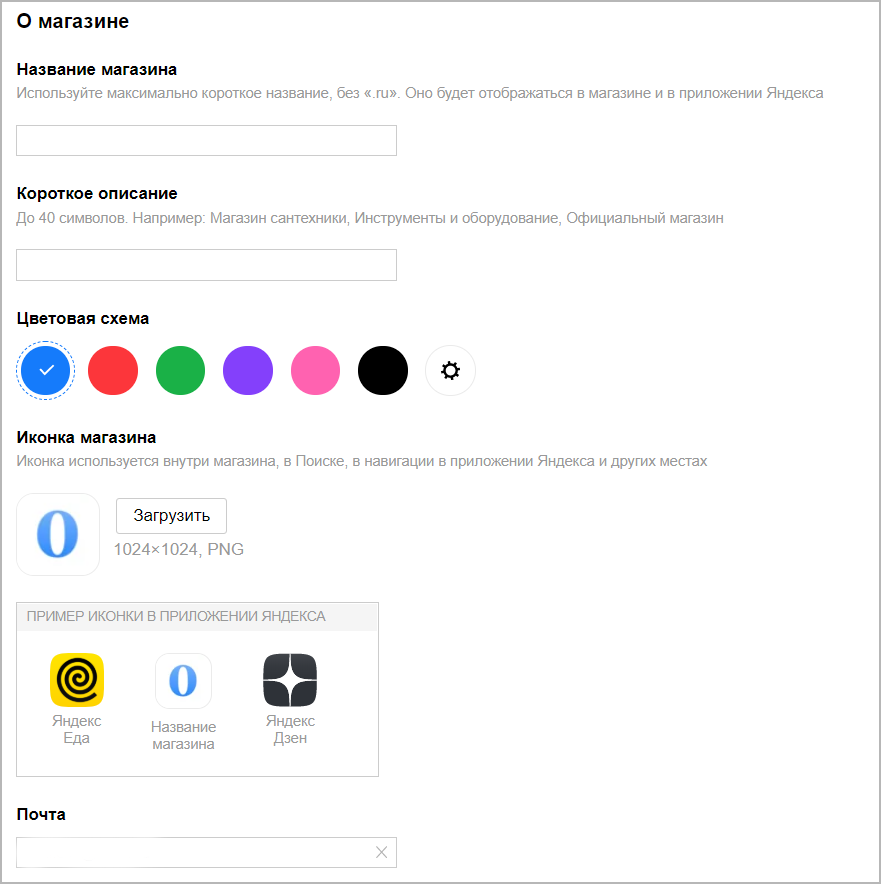Чтобы добавить айдентики вашему магазину теперь не надо нанимать специалиста или писать код. Достаточно воспользоваться новыми инструментами Вебмастера, где можно добавить название магазина, описание и лого, а также выбрать для них цветовую гамму.