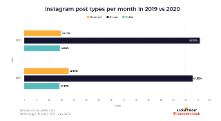 С момента запуска каруселей в 2017, бренды используют функцию все чаще. На старте было 3-4% каруселей, сейчас карусели доходят до 20% постов В мае 2019 процент каруселей был больше, чем у видео.