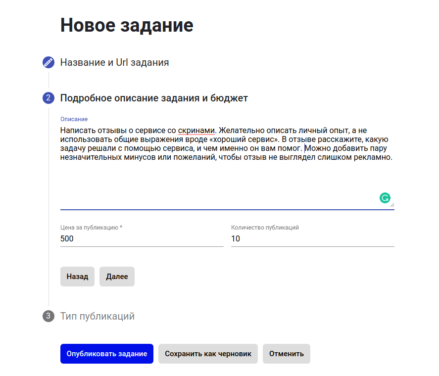 При создании задачи заказчик самостоятельно назначает цену и получает предложения в рамках заданной суммы. Из-за конкуренции цена на размещение на более-менее похожих сайтах не будет сильно отличаться и публикации через Linkpress обойдутся дешевле, чем при прямых договоренностях с владельцами сайтов. И не придется тратить время на переговоры.