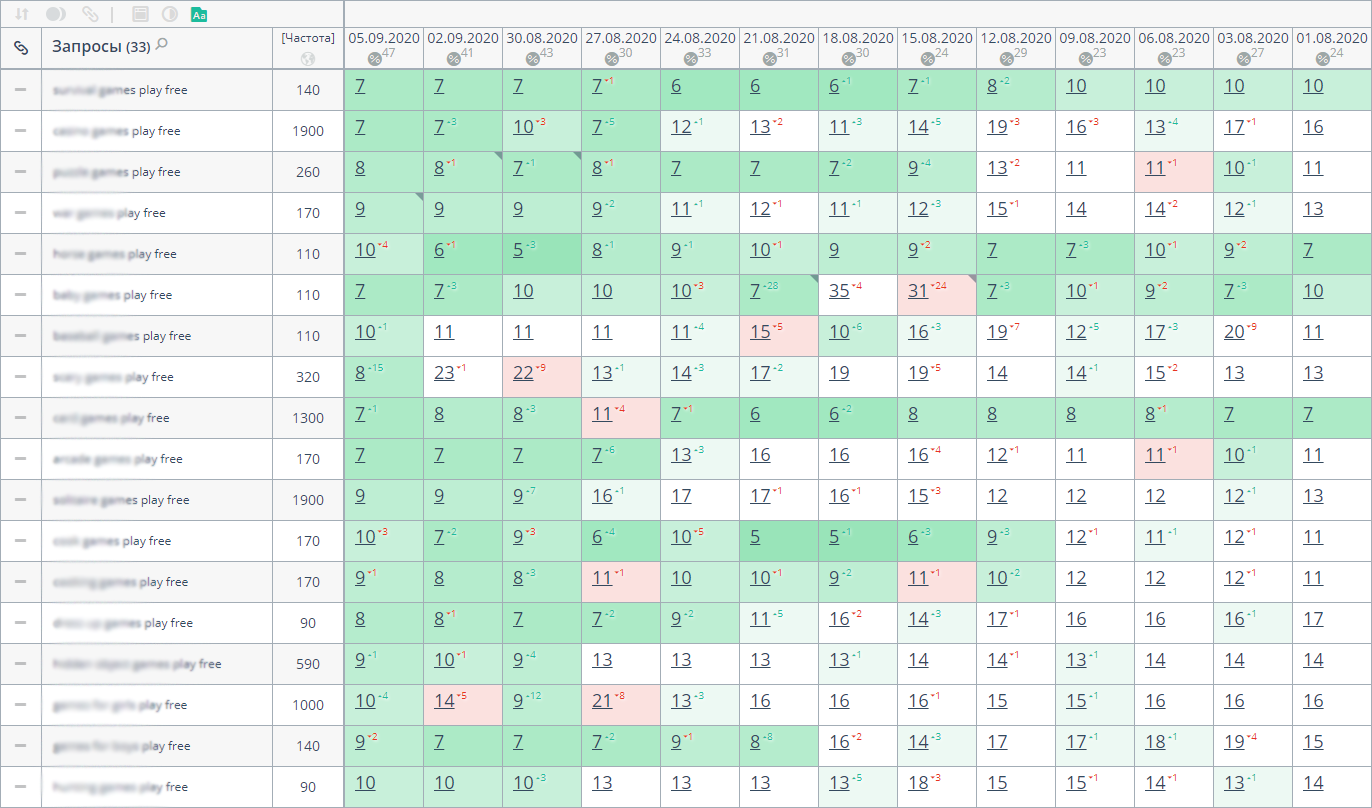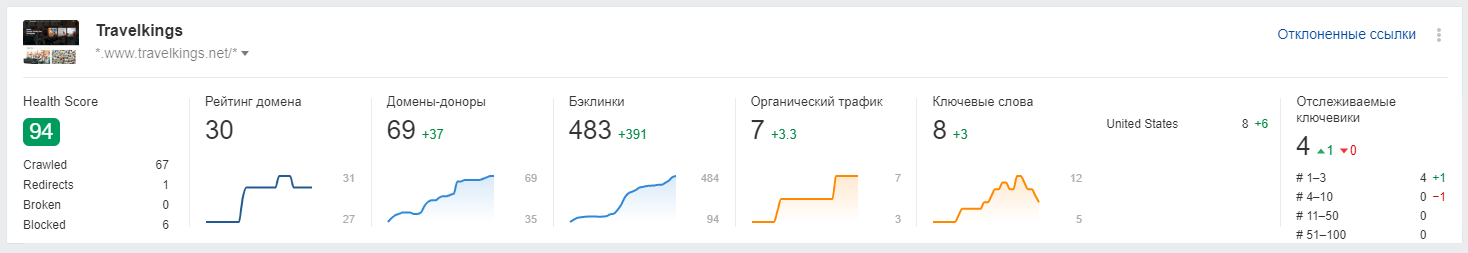 Из 70 запросов 24% на начало эксперимента уже входили в первую десятку в Google по региону США. Ссылки ставились преимущественно на страницы из ТОП-20 с соответствующими им анкорами. Всего с начала августа 2020 года было проставлено 15 ссылок.