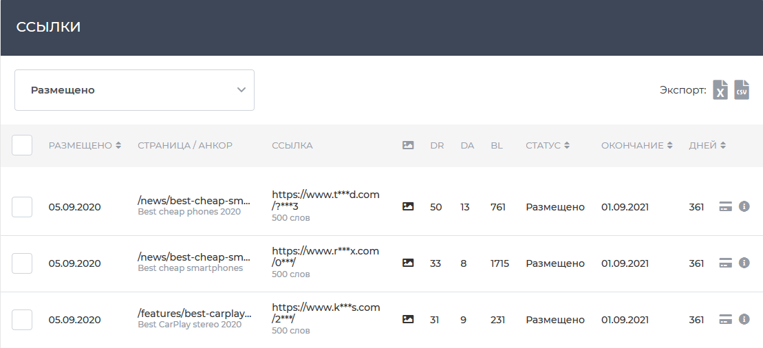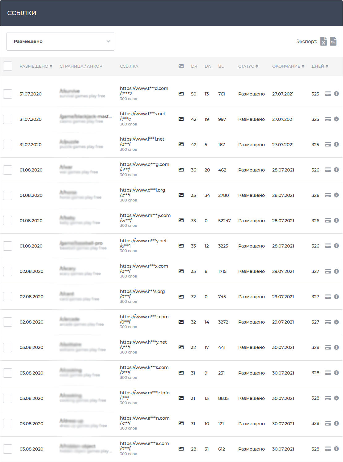 Важный момент: чтобы сеть жила долго, она должна быть скрытной. Именно поэтому вы не получите прямые ссылки на сайты сети, в том числе после размещения. Сервис гарантирует подбор максимально релевантных площадок с заявленными параметрами и создание контента носителями языка. В отчете о размещении вы увидите параметры сайтов, замаскированный URL статьи, а также скриншот статьи.