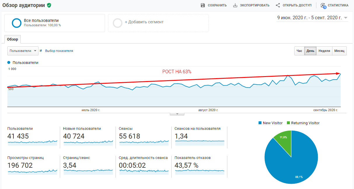 До запуска продвижения в июле 2020 года доход сайта составил $560. После примерно месяца работы с сервисом вырос до $638. По результатам первой недели сентября мы ожидаем доход от Google Adsense в районе $700 долларов к концу месяца. Таким образом, ожидаемый рост должен составить 25% или 140 в долларовом эквиваленте.