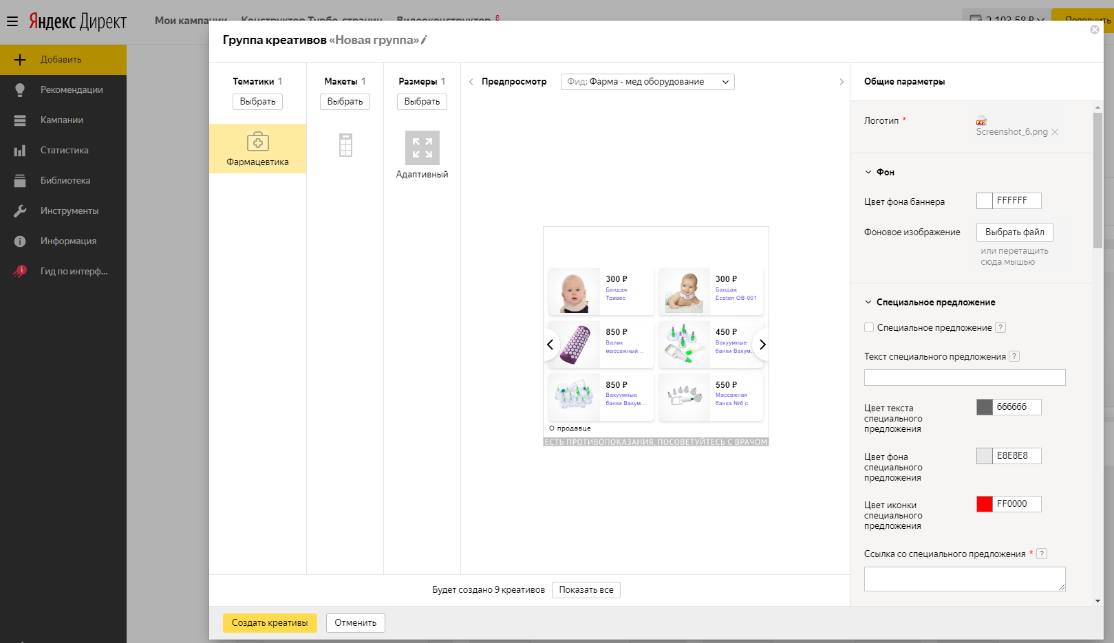 Создать смарт-баннер можно через создание креатива. Более подробно с пошаговой инструкцией можно ознакомиться в блоге Яндекса.