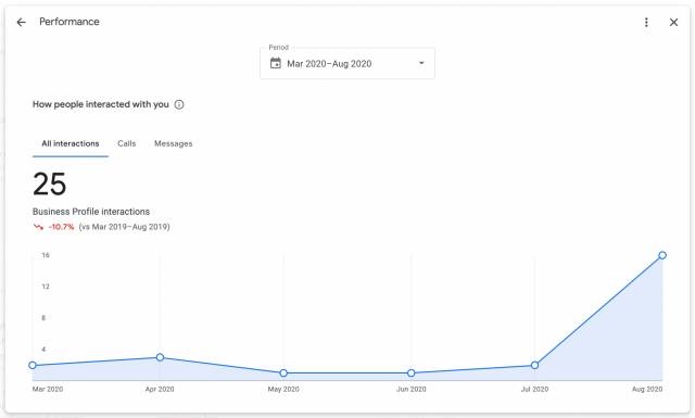 В августе GMB анонсировали новые отчеты по эффективности, и теперь они постепенно вступают в силу. Новые отчеты уже доступны для Поиска, вскоре будет добавлена информация по Картам. По мере их добавления, прежние версии будут удалены из приложения и с сайта GMB. Данные будут доступны в течение полугода; показатели взаимодействия обновляются ежедневно, остальные — ежемесячно.
