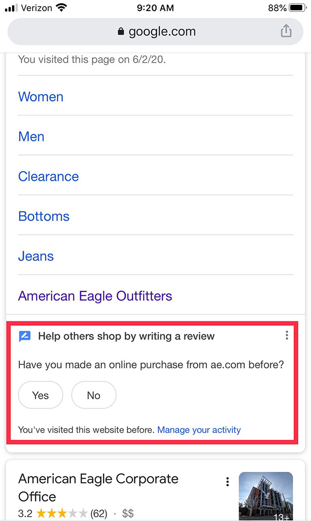 Google и раньше предлагал пользователям оставить отзывы или оценить результаты поиска, однако в данном случае речь идет исключительно об электронной коммерции. В случае, если пользователь ранее приобретал товары у продавца и решил ввести запрос по его наименованию в поиске, Google предложит оставить свой отзыв о продавце. Но сперва уточнит, приобретали ли вы товары у этого продавца раньше.