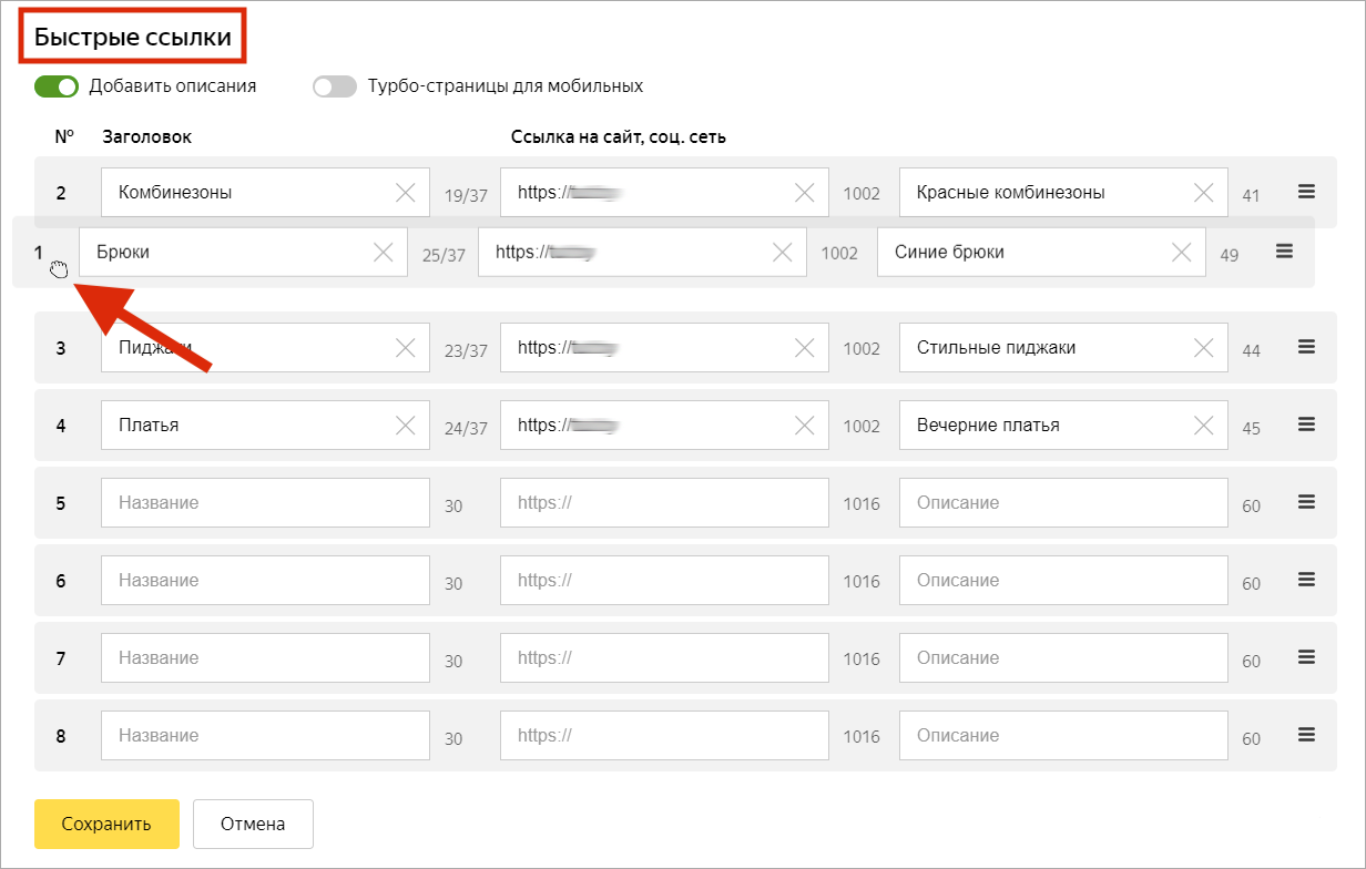 - Изменить порядок быстрых ссылок можно, просто перетащив их курсором.