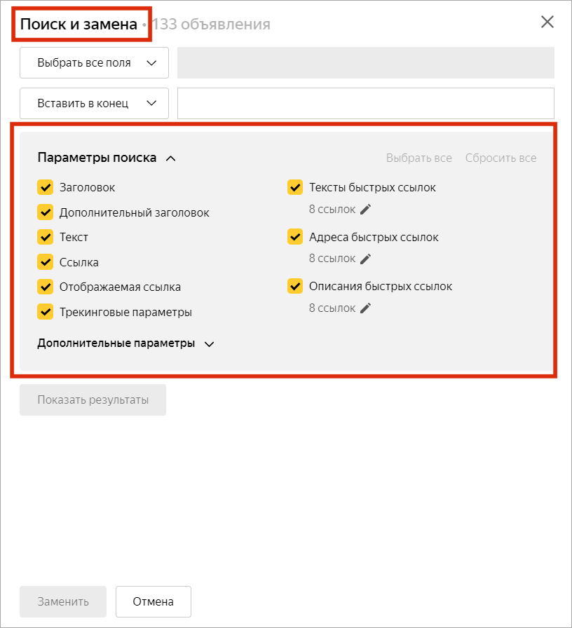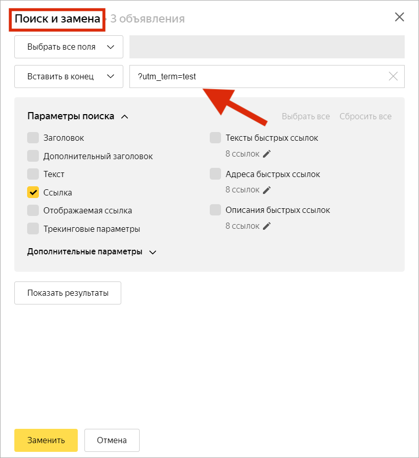 - Добавилась возможность одновременного изменения URL-меток во всей кампании или группе.