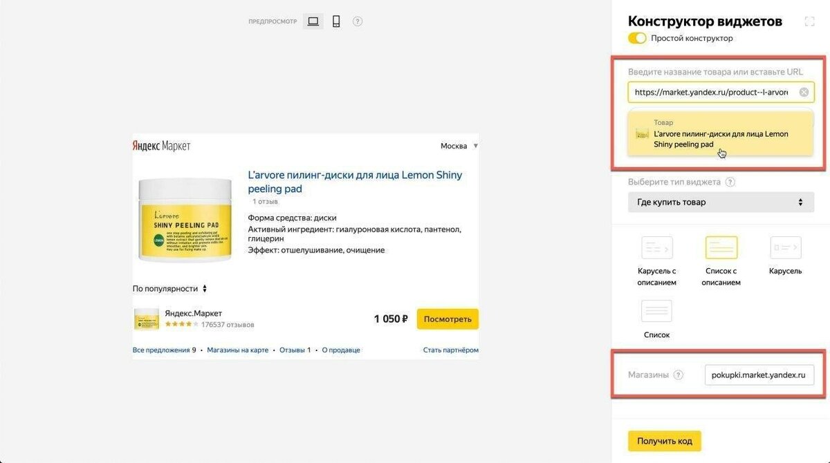 Во-первых, товар, о котором вы рассказываете в своем блоге, можно добавить в конструкторе виджета прямо по ссылке с Яндекс.Маркета. Отпала необходимость искать товары вручную.