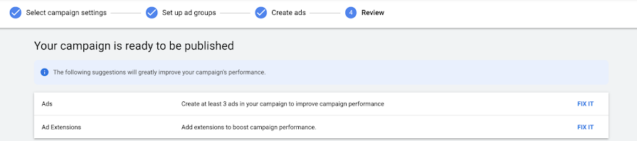 Новые кампании стало возможно создать прямо со страницы обзора, и по завершению сессии сразу же посмотреть, отклонили ваше объявление или нет. Если отклонили, то почему и что можно сделать, чтобы его исправить.