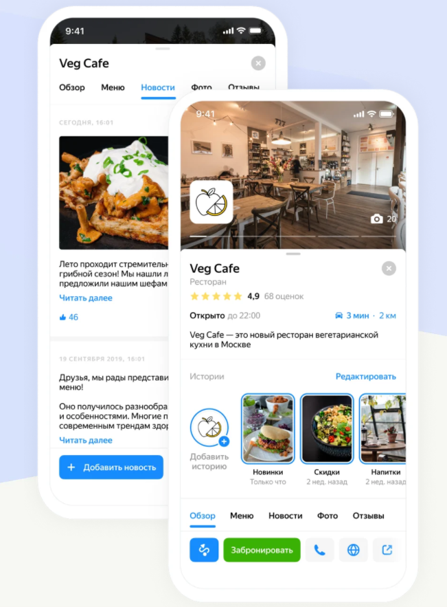Сторис позволят быстро и наглядно поделиться с пользователями значимой на ваш взгляд информацией. Для предпринимателя, в зависимости от сферы деятельности, это могут быть интерьер и блюда вашего заведения, мастер-классы и лекции, расписание занятий, примеры работ мастеров и так далее. Такой формат Яндекс.Карты использует впервые.